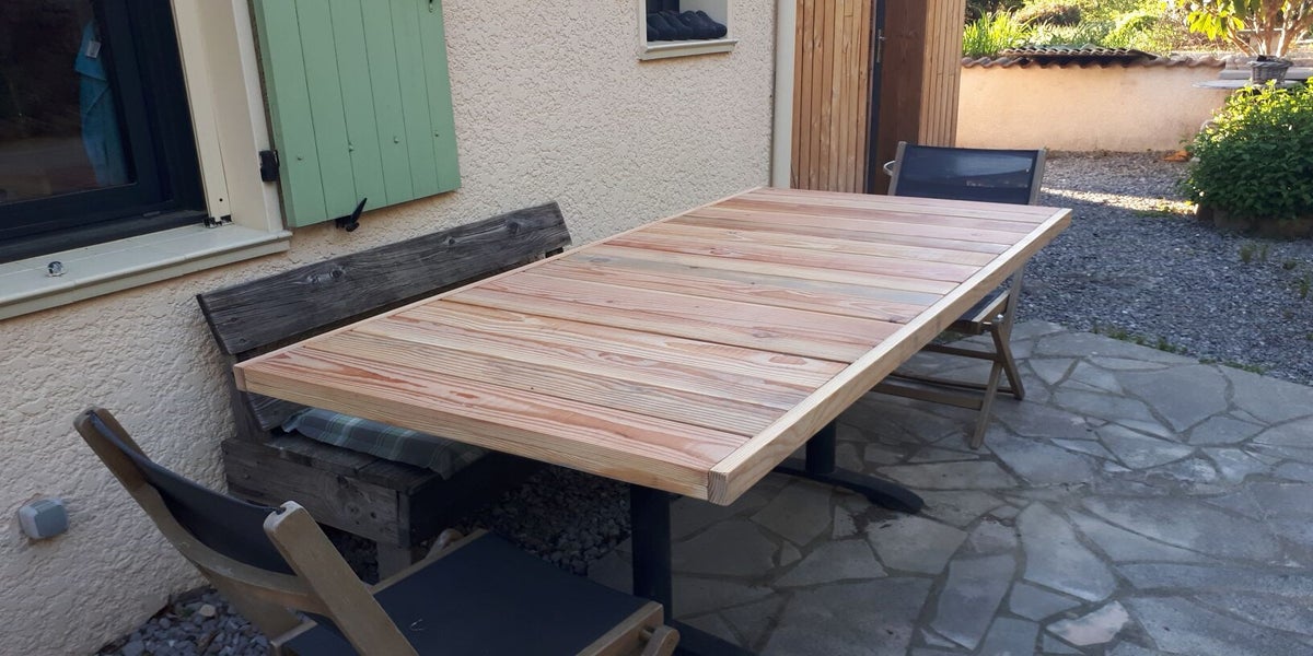 Découvrez mes tables en bois, conçues pour partager des moments chaleureux en famille ou entre amis, au cœur de votre jardin ou dans votre salon.